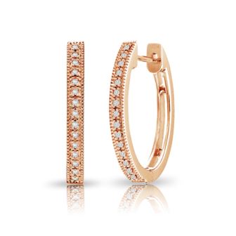 Step into a world where every shimmering moment is a testament to your love story. Behold these enchanting Diamond Hoop Earrings in 10K Rose Gold, adorned with a captivating 0.10ct of diamonds. As she wears these exquisite hoops, let them be a reflection of the depth of your affection, each diamond whispering sweet promises of forever. Crafted with meticulous attention to detail, the warm embrace of rose gold cradles the diamonds, enhancing their natural radiance. Despite their modest size, their brilliance knows no bounds, casting a spell of romance wherever she goes. In the gentle hues of rose gold, and with the mesmerizing allure of Color-IJ and Clarity-I2 diamonds, these earrings become more than just adornments-they become a symbol of your unwavering commitment. Let these Diamond Hoop Earrings be a constant reminder of the love that binds you together, sparkling brightly as a testament to the depth of your affection.