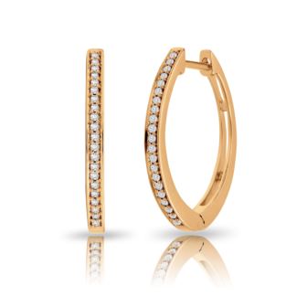 Capture her heart with the delicate allure of these diamond hoop earrings, embraced in the enchanting glow of 10K rose gold. Each curve of these hoops whispers of a love story, woven with the timeless elegance of devotion. Adorned with a mesmerizing array of diamonds totaling 0.20 carats, these earrings radiate a gentle sparkle, mirroring the depth of your affection. Set in the captivating hues of IJ color and boasting the clarity of I2, each diamond embodies the purity of your bond, illuminating her beauty with every glance. As she adorns herself with these exquisite hoops, let them serve as a cherished symbol of your unwavering commitment, a promise of forever sealed in the brilliance of the diamonds. Gift her not just jewelry, but a token of your eternal love, destined to shimmer with every step of your journey together.