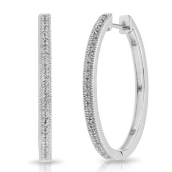 Round Diamond Hoop Earrings in 10K White Gold 0.20ct, Color-IJ, Clarity-I2. These gorgeous diamond hoop earrings feature round diamonds in a 10k white gold setting. The total carat weight of the diamonds is 0.20ct. These earrings make for a stunning addition.