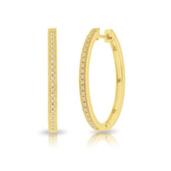 Embrace the essence of everlasting love with these Diamond Hoop Earrings in 10K Yellow Gold. Crafted with precision and passion, each hoop delicately cradles 0.15ct of round diamonds, illuminating her beauty with a timeless sparkle. In the soft embrace of yellow gold, these earrings symbolize the warmth of your affection, while the mesmerizing diamonds, boasting a Color-IJ and Clarity-I2, whisper tales of eternal devotion. As she wears these enchanting hoops, let them serve as a shimmering reminder of your unwavering commitment. With every glimmer, let her heart be filled with the joy of your love, knowing that these Diamond Hoop Earrings are a symbol of the forever you share.