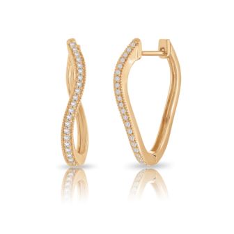 Grace her ears with the enchanting allure of these diamond hoop earrings, cradled in the tender embrace of 10K rose gold. Each arc whispers tales of love, a delicate dance of affection that knows no bounds. Adorned with a celestial ensemble of diamonds totaling 0.20 carats, these earrings cast a soft, luminous glow, reflecting the depth of your devotion. Set in the captivating hues of IJ color and boasting the clarity of I2, each diamond embodies the essence of your bond, sparkling with every heartbeat. As she wears these exquisite hoops, let them be a symbol of your enduring commitment, a promise of forever etched in the timeless elegance of diamonds. Gift her not just jewelry, but a reflection of your everlasting love, destined to illuminate her path with every gentle sway.
