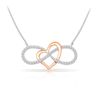 Diamond Infinity Necklace with Heart in 18K Gold over 925 Sterling Silver 0.20ct, Color-IJ, Clarity-I2. This beautiful diamond infinity necklace with a heart in 18K gold over 925 sterling silver is sure to turn heads. Featuring a stunning 0.20 carat diamond at the infinity pendant, this necklace is perfect for any occasion. The pendant hangs from an adjustable 18K gold over 925 sterling silver chain, making it adjustable and easy to wear. This stunning necklace is the perfect way to express your love and commitment to the one you love.