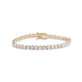 Wrap her wrist in the timeless embrace of this exquisite round lab-grown diamond tennis bracelet, a testament to the eternal bond you share. Crafted in the lustrous glow of 14K Yellow gold, each delicate link is a whisper of devotion, a promise of forever sealed in brilliance. Adorned with a radiant array of lab-grown diamonds totaling 5.50 carats, this bracelet glimmers with celestial beauty, capturing the essence of your love with every shimmering facet. Set in the flawless hues of EF color and boasting the clarity of VS1-VS2, each diamond shines with unparalleled purity, reflecting the depth of your affection with every gentle sway. As she adorns her wrist with this exquisite piece, let it serve as a tangible reminder of the infinite love you share, a beacon of light guiding you both on your journey together. Gift her not just jewelry, but a timeless treasure that speaks to the depth of your commitment, destined to adorn her with grace and elegance for eternity.
