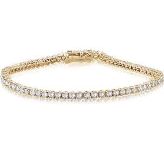 Wrap her wrist in the timeless embrace of this exquisite round lab-grown diamond tennis bracelet, a testament to the eternal bond you share. Crafted in the lustrous glow of 14K Yellow gold, each delicate link is a whisper of devotion, a promise of forever sealed in brilliance. Adorned with a radiant array of lab-grown diamonds totaling 5.00 carats, this bracelet glimmers with celestial beauty, capturing the essence of your love with every shimmering facet. Set in the flawless hues of EF color and boasting the clarity of VS1-VS2, each diamond shines with unparalleled purity, reflecting the depth of your affection with every gentle sway. As she adorns her wrist with this exquisite piece, let it serve as a tangible reminder of the infinite love you share, a beacon of light guiding you both on your journey together. Gift her not just jewelry, but a timeless treasure that speaks to the depth of your commitment, destined to adorn her with grace and elegance for eternity.