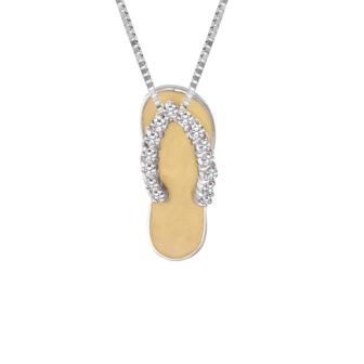 Elevate your style with this Rhodium Plated Yellow Enamel Clear CZ Sandal Pendant, gracefully suspended from a chain in 925 Sterling Silver. The pendant artfully combines the brilliance of clear cubic zirconia with the sunny charm of a sandal design, creating a refined accessory that exudes sophistication and a touch of playful allure. Perfect for adding a unique and stylish touch to your ensemble, bringing a sense of sunshine wherever you go. Rhodium Plated Yellow Enamel Clear CZ Sandal Pendant with chain in 925 Sterling Silver.
