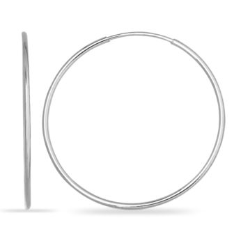 Endless Hoop Earring in 10K White Gold 21MM. If you're looking for an earring that will make a statement, you can't go wrong with these Endless Hoop Earrings in 10K White Gold. Crafted with exquisite attention to detail, they have a timeless style that will never go out of fashion. The classic hoop design is elegant and versatile, perfect for any occasion. The 10K white gold is polished to a brilliant shine, adding a touch of sophistication to any outfit. Whether you're dressing up for a night out or just wanting to add a little sparkle to your everyday look, these Endless Hoop Earrings in 10K White Gold will be the perfect finishing touch.