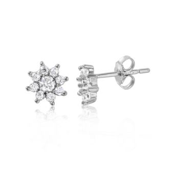 Elevate your elegance with our Rhodium Plated Flower Earring in 925 Sterling Silver. Featuring a radiant stone at the heart and delicate stones adorning each petal, these exquisite earrings exude sophistication and charm. A perfect addition to your collection, these earrings add a touch of understated beauty and grace to any outfit, allowing you to blossom with enduring style and poise. Rhodium Plated Flower Earring in 925 Sterling silver.