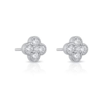 Elevate your elegance with our Four Leaf Clover Earrings, a symbol of timeless grace and luck. Meticulously crafted from 925 sterling silver and adorned with a lustrous rhodium plating, these exquisite earrings feature delicate four-leaf clovers, each adorned with the subtle sparkle of delicate cubic zirconia. The captivating brilliance of the cubic zirconia adds a touch of sophistication to these already charming earrings, making them a perfect fusion of nature's beauty and refined craftsmanship. These studs are a stylish and enduring addition to your jewelry collection, adding a touch of grace and shimmer to any ensemble.