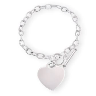 High Polished Heart Charm Bracelet in 925 Sterling Silver - 7"