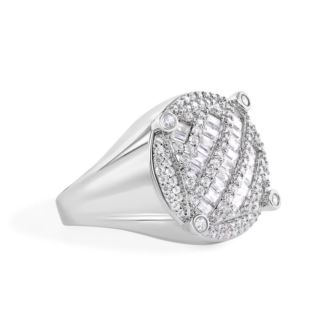 Men's 20.9MM Round Top Baguette cut Clear CZ Ring in Rhodium Plating over 925 Sterling Silver Size-9