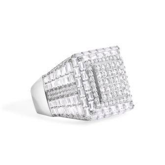 Men's 20.7MM Square Top Baguette cut Clear CZ Ring in Rhodium Plating over 925 Sterling Silver Size-9