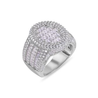 Men's 20.6MM Statement Baguette Clear CZ Oval Top Ring in Rhodium Plating over 925 Sterling Silver Size-9