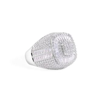 Men's 21.7MM Statement Square Top Baguette cut Clear CZ Ring in Rhodium Plating over 925 Sterling Silver Size-10