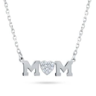 Mom Heart CZ Neckalce in Rhodium Plating over 925 Sterling Silver