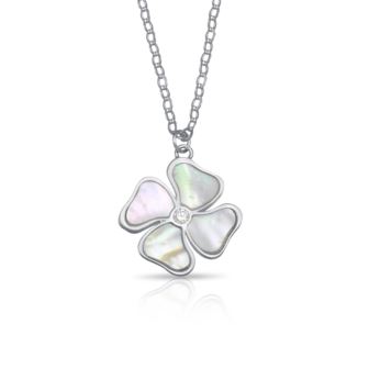 Elevate your elegance with our Mother of Pearl and CZ Clover Necklace, a captivating blend of sophistication and charm. Meticulously crafted from 925 sterling silver and adorned with a lustrous rhodium plating, this exquisite piece features a clover pendant with an iridescent mother of pearl inlay and a delicate white stone at its center, adding a touch of subtle sparkle. The harmonious fusion of materials and intricate detailing make this necklace a timeless and stylish addition to your jewelry collection, enhancing your look with grace and understated elegance.