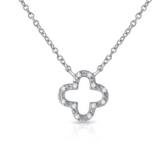 Elevate your elegance with our Open Center Clover Leaf CZ Necklace, a symbol of timeless charm and sophistication. Meticulously crafted from 925 sterling silver and adorned with a lustrous rhodium plating, this exquisite piece features a delicate four-leaf clover with an open center design, adorned with glistening cubic zirconia stones. The meticulous attention to detail and the radiant rhodium plating make this necklace a stylish and enduring addition to your jewelry collection, enhancing your look with a touch of classic beauty and contemporary elegance.