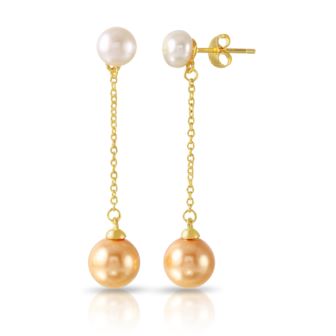 Elevate your elegance with these Gold Plated Fresh Water Pearl Earrings, gracefully designed in 925 Sterling Silver, featuring a delicate dangle of synthetic pearls. These earrings artfully blend the richness of gold with the timeless beauty of pearls, creating a refined accessory that exudes sophistication and grace, making them a perfect choice for any special occasion. Gold Plated Fresh Water Pearl with Dangling Synthetic Pearl Earring in 925 Sterling Silver.