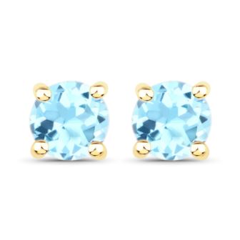 Round Blue Topaz Earrings in 10K Yellow Gold