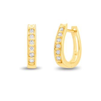 Round Diamond Hoop Earrings in Yellow Plating over 925 Sterling Silver 0.12ct Color-IJ, Clarity-I3