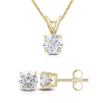 2.25ct Round Lab Grown Diamond Pendant-Earrings Set with chain in 14K Yellow Gold Color-FG, Clarity-VS1 VS2