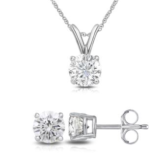 2.50ct Round Lab Grown Diamond Pendant-Earrings Set with chain in 14K White Gold Color-FG, Clarity-VS1 VS2