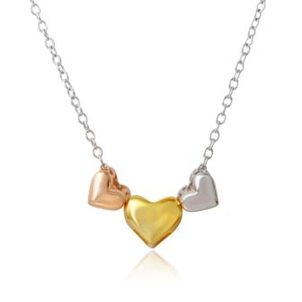 Cherish the essence of love with our Tri-Color Plated Three Heart Necklace, a heartwarming piece in 925 Sterling Silver. With its tri-color design and three hearts, this necklace beautifully symbolizes love in all its shades, making it a charming addition to your collection. Tri Color Plated Three Heart Necklace in 925 Sterling Silver.