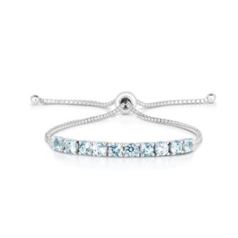 Whimsical blue topaz bolo bracelet- wear it stacked or solo for a dramatic look.Genuine 4mm blue topaz set in sterling silver with a box chain bolo slide clasp for an updated look.