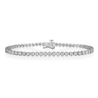 Magnificent shimmer and eye-popping sparkle. 1.00twt round diamonds set in 10k diamond cut miracle plates. 7" long with a safety clasp for extra security. Striking worn alone or, for a more contemporary look, pair it with your watch or a chunky bracelet.