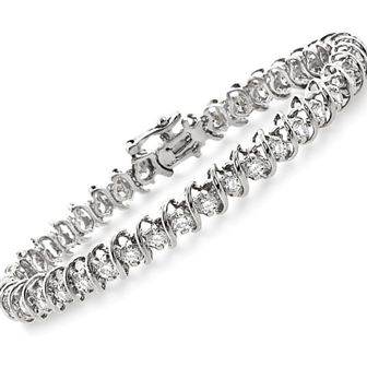 "S" stands for the kind of style that encircles your soul. Classic "S" link tennis bracelet, 4.00twt round brilliant cut diamonds, 7" long with a box clasp, 14k white gold. Figure "8" safety clasp for added security.