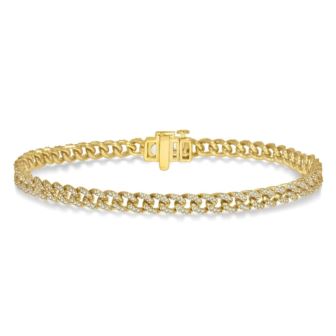 A MUST have- diamond Curb link bracelet, featuring 1.00twt round brilliant cut diamonds pave' set in 14k yellow gold. 7" long, with a box clasp and a safety latch for extra security.