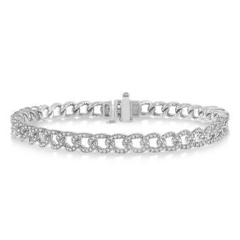 A MUST have- diamond Curb link bracelet, featuring 1.50twt round brilliant cut diamonds pave' set in 14k white gold. 7" long, with a box clasp and a safety latch for extra security.
