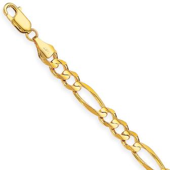 For a classic, sophisticated look- choose this solid 14k yellow gold 7mm handmade Figaro bracelet. 8.5" long with a lobster claw clasp.