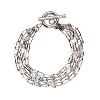 Five shimmering silver strands add spice to your day! And evening!Diamond cut, paperclip links with a bold toggle clasp.Sterling silver with rhodium finish for brilliant, long wear.Perfect worn solo or layer up with pearls and your favorite beads.