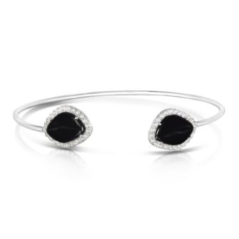 Deco design with a contemporary twist- 12x10mm black onyx cuff with white sapphire accents. Sterling silver cuff gives this beauty a modern feel.