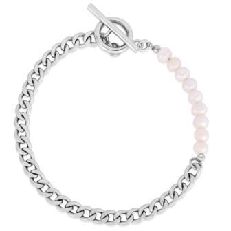 Bold and fun pearl and curb link bracelet with a toggle clasp. ----mm freshwater pearls and puffed links for a fresh and modern look. Sterling silver, 7" long. Dress it up or down - you make the rules!