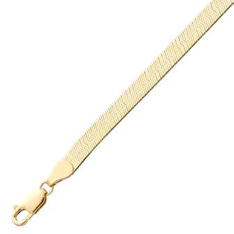 Make a big statement with this gleaming 14k yellow gold herring bone bracelet. 5mm wide, 8" long with a lobster claw clasp.