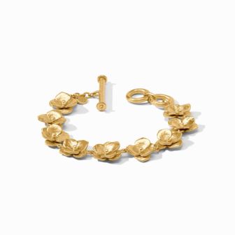 Discover the enchanting Bloom In Gold Set by Julie Vos, a collection that captures nature's beauty with elegance. The set begins with the Bloom Delicate Station Necklace, showcasing golden flower stations along an adjustable, 16" – 18" refined rope chain, perfect for layering or wearing solo. Next is the Bloom Bracelet, a 24k gold-plated piece featuring delicately sculpted floral motifs and an adjustable 7" – 7.5" toggle closure, for a fit designed to accommodate most wrist sizes. Completing the set are the Bloom Statement Earrings, which offer a dramatic flair with sculpted golden blossoms, a petite companion flower, and a dramatic 2.1" dangling style, making them ideal for both special occasions and everyday wear. Elevate your style with this timeless set that embodies romantic sophistication and feminine grace.