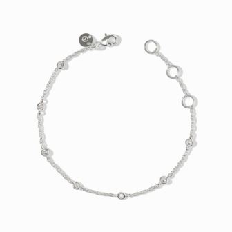 As dainty as a wisp of air, the seven small stones punctuating this quietly elegant bracelet make a subtle and sweet style statement. Pure silver plate (tarnish-free), CZ. Inner circumference: 6.3 / 6.8 / 7.3 inches (adjustable). Width: 0.1 inches. Closes with lobster clasp. Julie Vos hallmark.