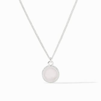 Pure silver plate (tarnish-free), imported glass. Closes with lobster clasp. Pendant measures 0.8 inches. Length: 17 / 18 inches (adjustable). Julie Vos hallmark.