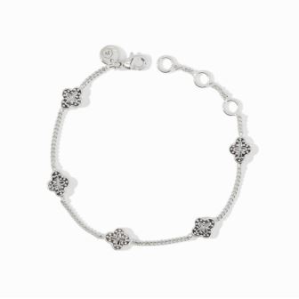 Petite quatrefoil stations on a slender chain. Pure silver plate (tarnish-free). Inner circumference: 6 / 6.5 / 7 inches (adjustable). Width: 0.3 inches. Closes with lobster clasp. Julie Vos hallmark.