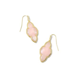 An homage to our iconic medallion – representing joy, optimism, possibility, and femininity – meet the Abbie Gold Drop Earrings in Rose Quartz. With an etched frame and elongated silhouette, these one-of-a-kind earrings are a nod to timeless Kendra Scott design. 1.57'L x 0.66'W.