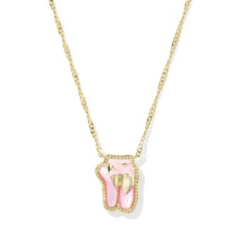 Keep every necklace stack en pointe with the Ballet Gold Blush Mother of Pearl Short Pendant Necklace, featuring a ballet slipper shape captured in a blush pink and framed with our signature hoofprint detailing. This sweet pendant is perfect for pirouetting in style and makes a great gift for any ballerina, too. The Kendra Scott Foundation Sports Fund is dedicated to empowering youth by providing access to sports and athletic opportunities. Every fashion jewelry sports pendant purchase directly supports the foundation's mission to fund youth sports programs helping to inspire the next generation through the power of play. We will be donating 1% of revenue from our fashion jewelry sports pendants to fund and support youth sports programs through The Kendra Scott Foundation Sports Fund. The Kendra Scott Foundation is a component of the Austin Community Foundation, a 501(c)(3) non-profit organization. 16" Chain with 3" Extender. 0.63"L X 0.47"W Pendant. Metal: 14k Yellow Gold Over Brass. Material: Blush Mother-of-Pearl. Closure: Lobster Clasp w/ Single Adjustable Slider Bead.