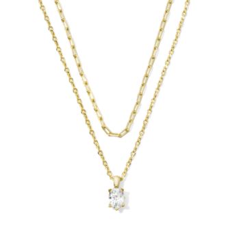 Gift them a timeless pendant that adds a personal meaning to their jewelry collection. The Cailin Gold Multi Strand Pendant Necklace in White Crystal! 16" 17" Chains with 4" Extender. 0.4"L X 0.18"W Pendant. 14k Yellow Gold Over Brass. White Crystal. Closure: Lobster Clasp w/ Single Adjustable Slider Bead.