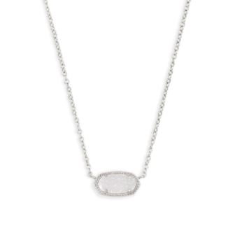 Our #1 bestseller. The Elisa Gold Pendant Necklace in Iridescent Drusy, one of the most iconic iterations of our signature shape. Dress it up or down, layer it or wear it solo - you can wear it every single day, in every single way. Metal Rhodium Plated Over Brass, Material: Iridescent Drusy, Closure: Lobster claw, Size:0.63"L x 0.38"W pendant, 15" chain, 2" extender".