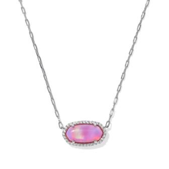 Our iconic pendant gets a glam upgrade in the Elisa Pave Frame Silver Short Pendant Necklace. With our signature stone surrounded by a sparkly pave border on a trendy paperclip chain, this necklace is an elevated take on everyone's favorite necklace. Metal: Rhodium Plated Over Brass. Stone: Pink Opalescent Resin, White CZ. Closure: Lobster Clasp W/ Single Adjustable Slider Bead. Size: 16" Chain With 3" Extender, 0.71"L X 0.39"W Pendant.