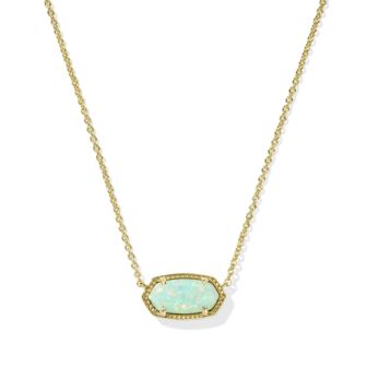 Add a pop of color to your everyday style with the Elisa Pendant Necklace in Green Kyocera Opal. Set on a delicate gold chain, this timeless piece effortlessly brightens any outfit. Its sleek silhouette makes it perfect for layering or solo wear, with dimensions: 15" chain with 2" extender, 0.71"L x 0.38"W pendant.