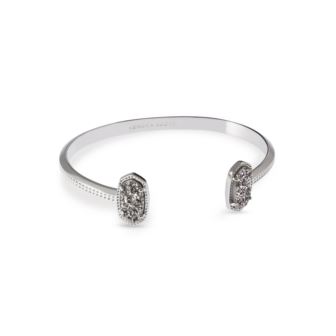 The rich sparkling appearance and a dainty pinch cuff book ended with our signature oval stones, the Elton Silver Cuff Bracelet in Platinum Drusy is a stack staple. This beautifully designed Silver cuff bracelet is guaranteed to turn heads every time you wear it. Metal: Silver Plated Over Brass Size: 0.63"L x 0.38"W Open, adjustable, Material: Platinum Drusy