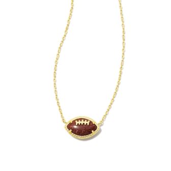Our signature pendant style in a football shape? Touchdown! The Football Gold Short Pendant Necklace in Orange Goldstone is the perfect way to put the “game" in your game day look. Layer with your favorite chain or wear as a standalone necklace-either way, youll be the most stylish fan in the stands. 14K Gold Over Brass. Spring Ring Clasp. 19" chain, 0.68" L x 0.41" W pendant.