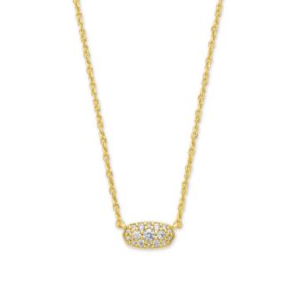 Our minimalist icon, dressed in White Crystal. The Grayson Gold Pendant Necklace is sophisticated sparkle for your next event, or every day. 19"Chain 0.70"L x 0.38"W Pendant