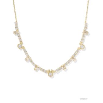 Step into a wonderful world full of magic and style wearing the Disney - Kendra Scott Gold Mickey Mouse and Minnie Mouse Tennis Necklace in White CZ. A playful mixture of crystals and mini motifs of Disney's darling sweethearts, this adjustable tennis necklace is as sweet as it is chic. Metal: 14k Yellow Gold Over Brass. Size: 19"Chain.